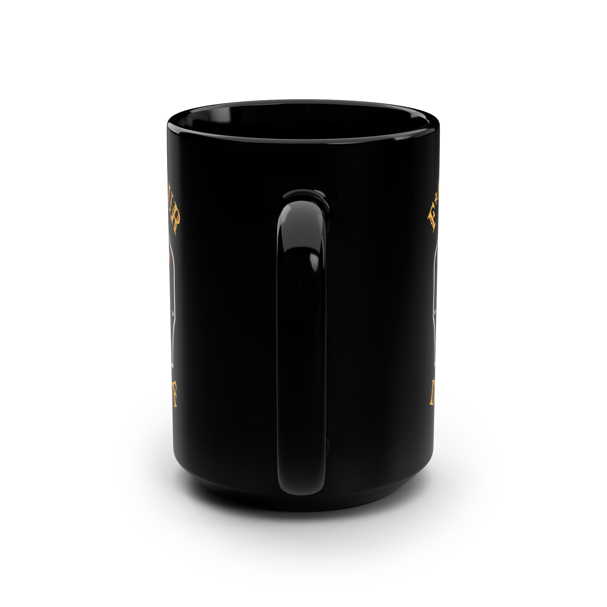 These black mugs come in one size – 15oz (0.44l) – plenty for morning caffeine boosts and hot cups of tea on a rainy day. They're easy to grip and feel sturdy thanks to the C-shaped handle. Add more personality by decorating them with your original designs. They'll be printed on the black ceramic material in picture-perfect quality with a glossy finish.