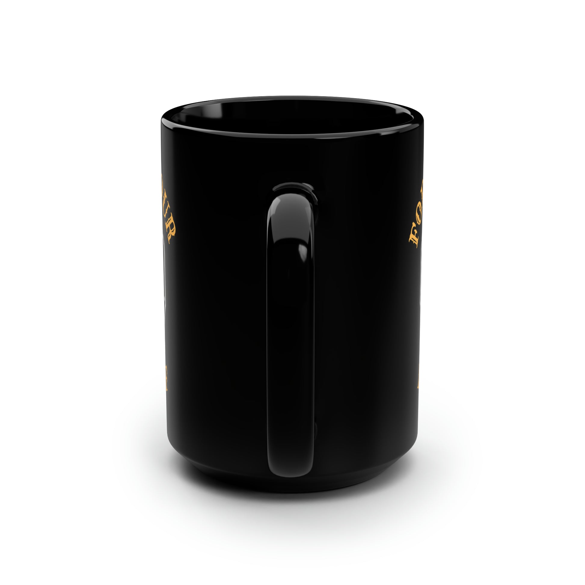 These black mugs come in one size – 15oz (0.44l) – plenty for morning caffeine boosts and hot cups of tea on a rainy day. They're easy to grip and feel sturdy thanks to the C-shaped handle. Add more personality by decorating them with your original designs. They'll be printed on the black ceramic material in picture-perfect quality with a glossy finish.